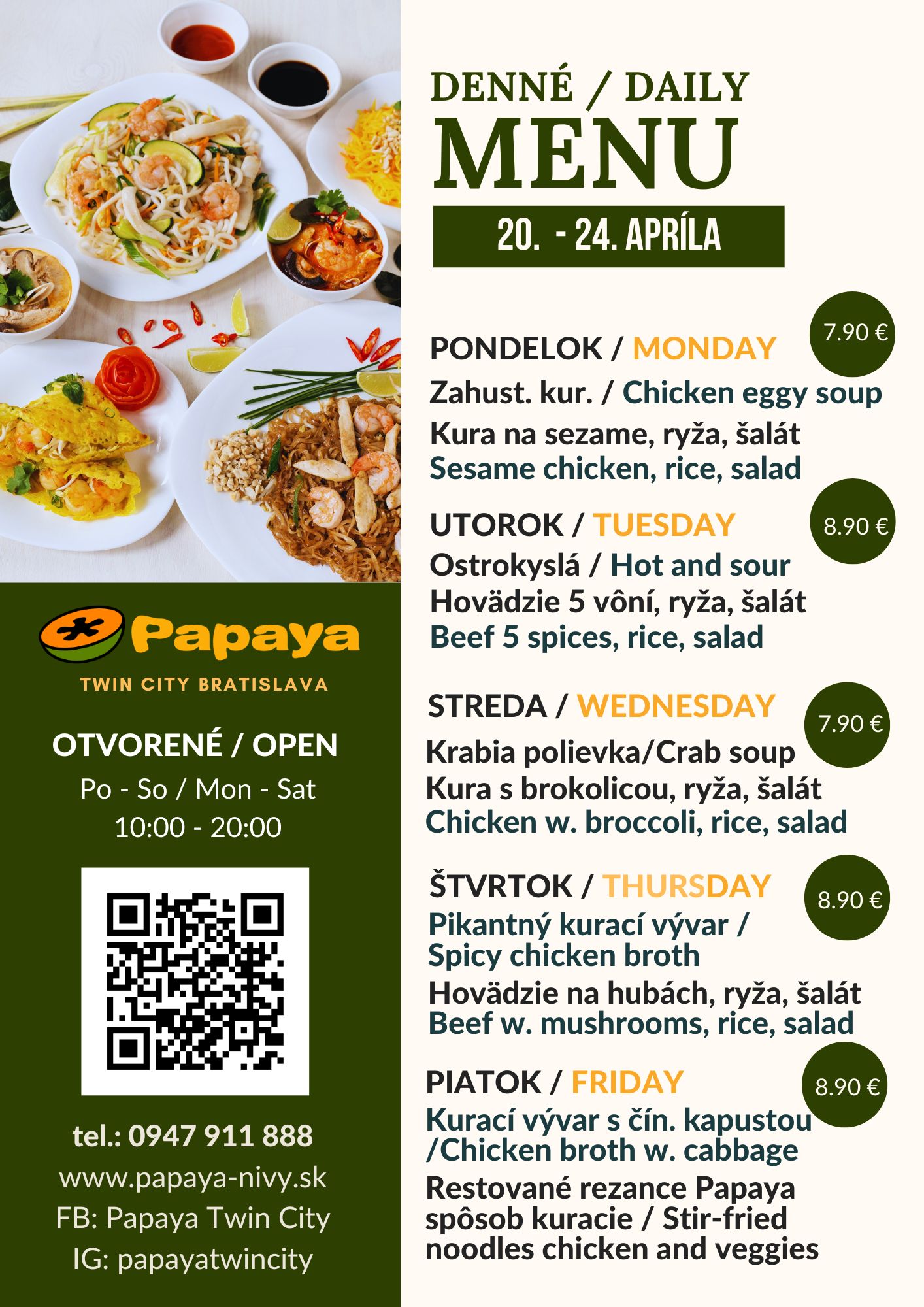Menu na celý týždeň - Papaya Twin City