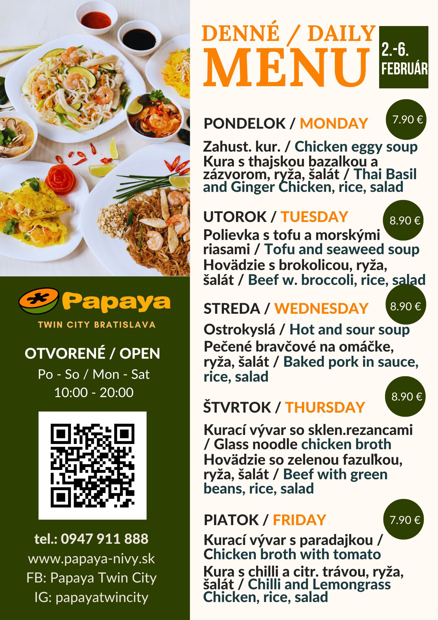 Zahustená kuracia polievka ▪ Kura s thajskou bazalkou a zázvorom ▪ Jazmínová ryža ▪ Miešaný šalát ▪ ALERG. 3,6CENA: 7,90 €