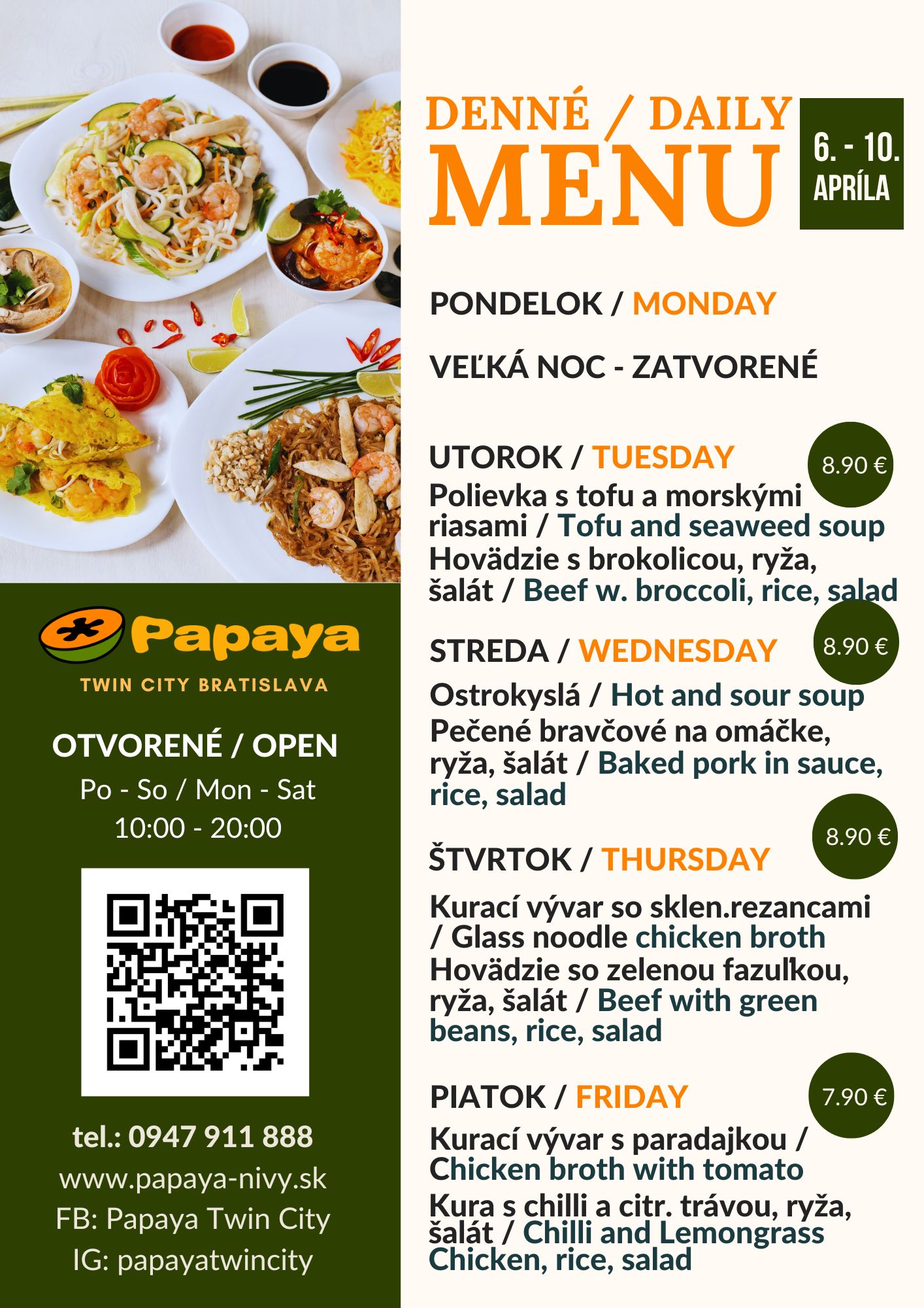 Polievka s tofu a morskou riasou ▪ Hovädzie s brokolicou ▪ Jazmínová ryža ▪ Miešaný šalát ▪ ALERG. 6